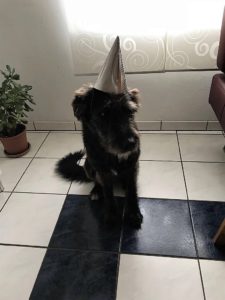„…so, die Party kann gleich beginnen. Mein Frauchen hat mir schon mal probehalber den Partyhut aufgesetzt um mich abzulenken, denn ich mag das Böllern nicht.
